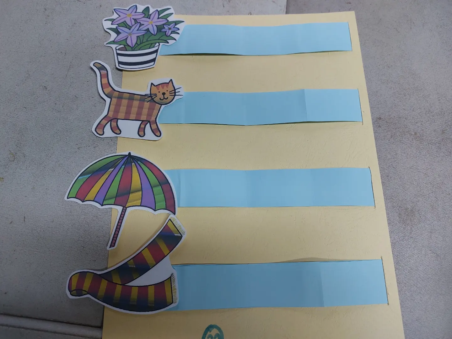 종이띠로 선을 만들고 동화책에 나온 그림 중에